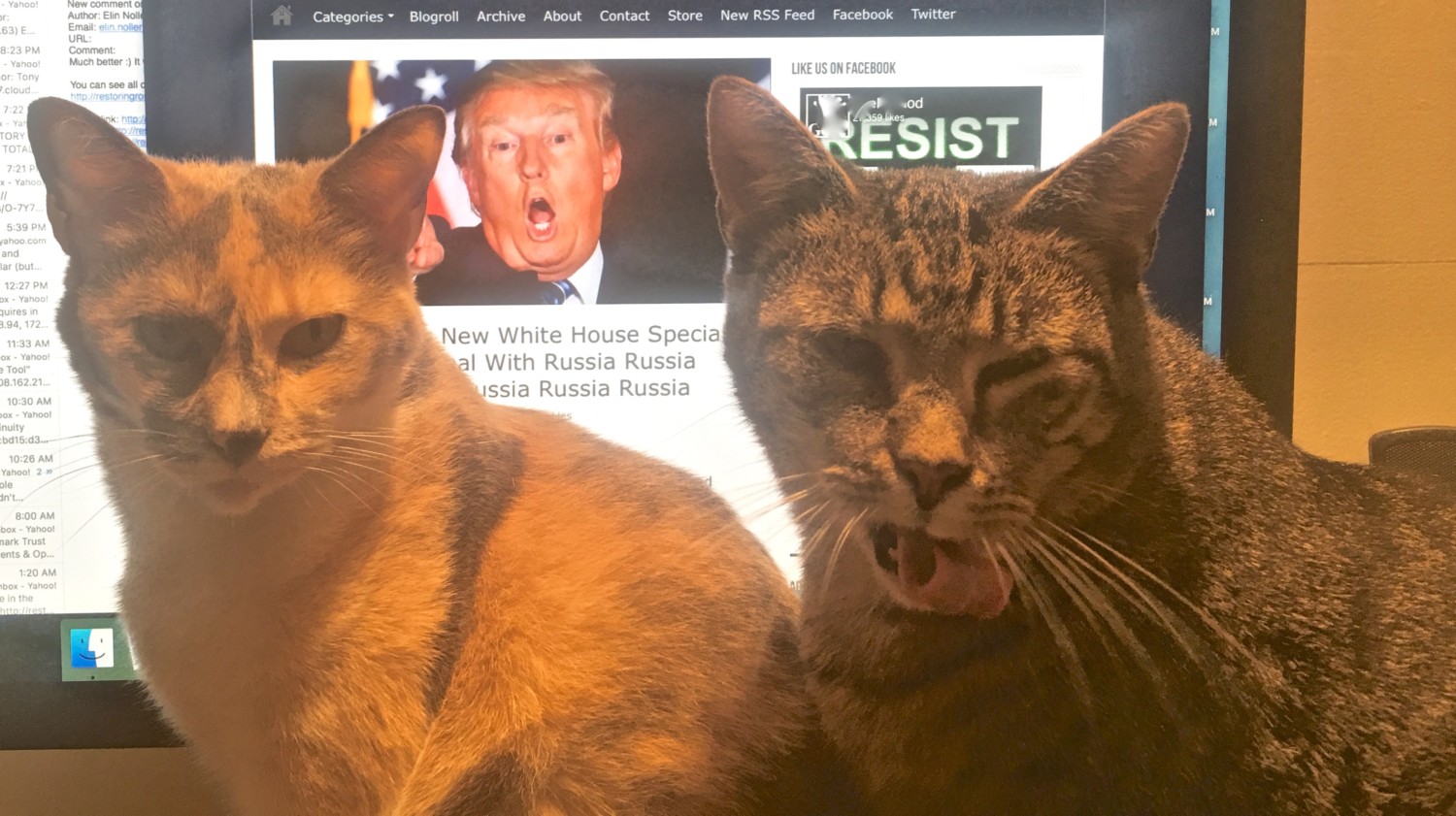 Maybe they were doing a cat’s version of Saturday Night Live and Fine is impersonating Alec Baldwin????