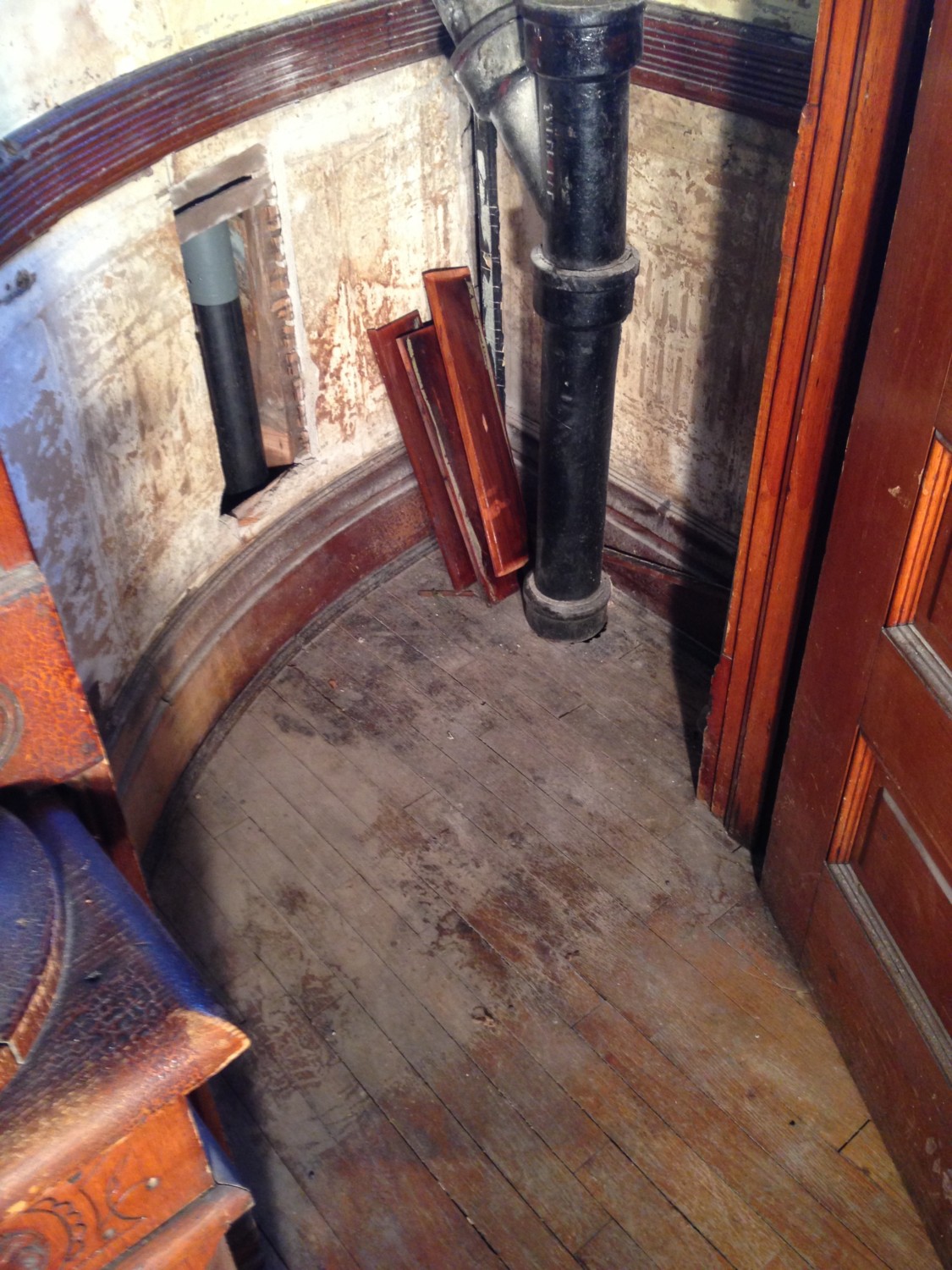 The closet is oddly shaped. Deliciously so. The waste pipe is not original and will be removed. Gleefully.