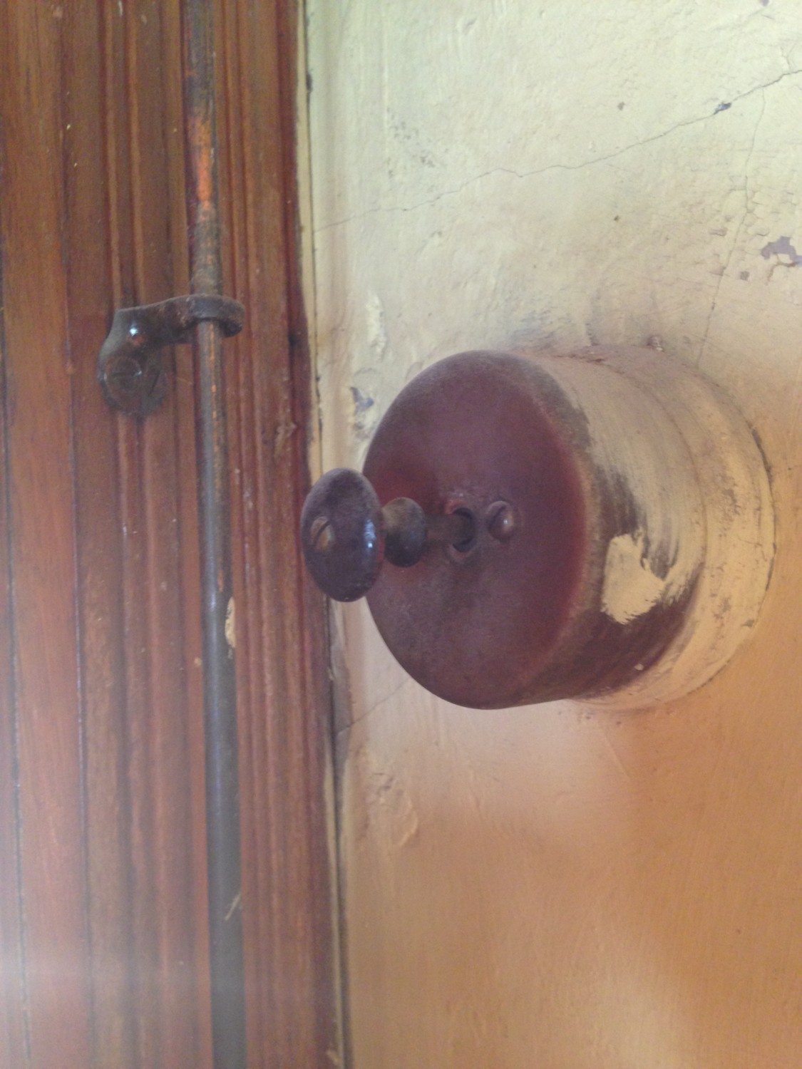Across the hall is this telephone ringer. I have no idea of how old it is, except that it is very very very old. Could it be original? The telephone closet would have certainly had a REMOTE ringer, as with the door to the closet closed nobody would have heard the phone ringing.