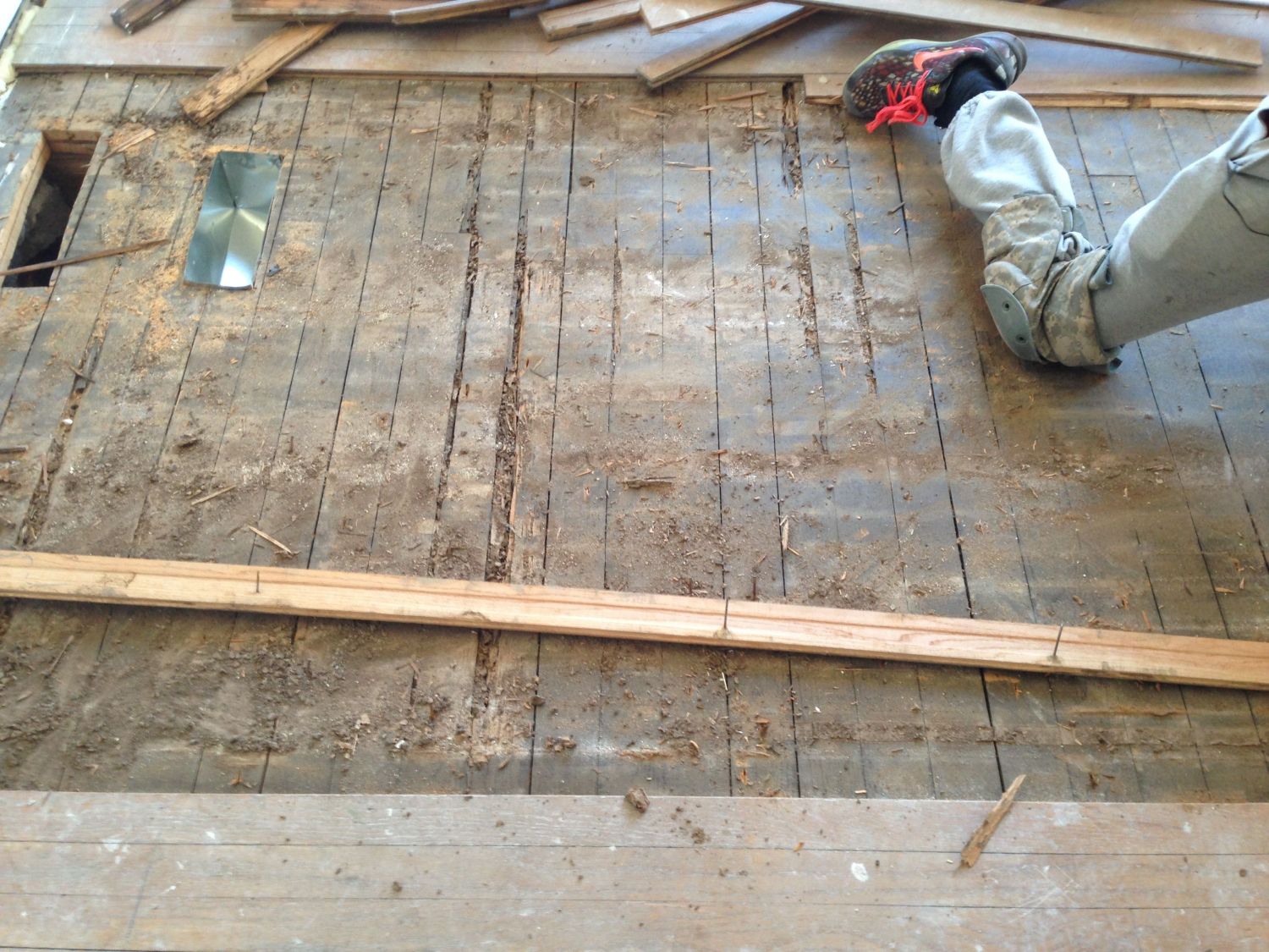 Gone floor. What is so cool is that under the oak flooring is the original plain pine flooring. And nobody has seen, nor walked on, this flooring for many many decades.