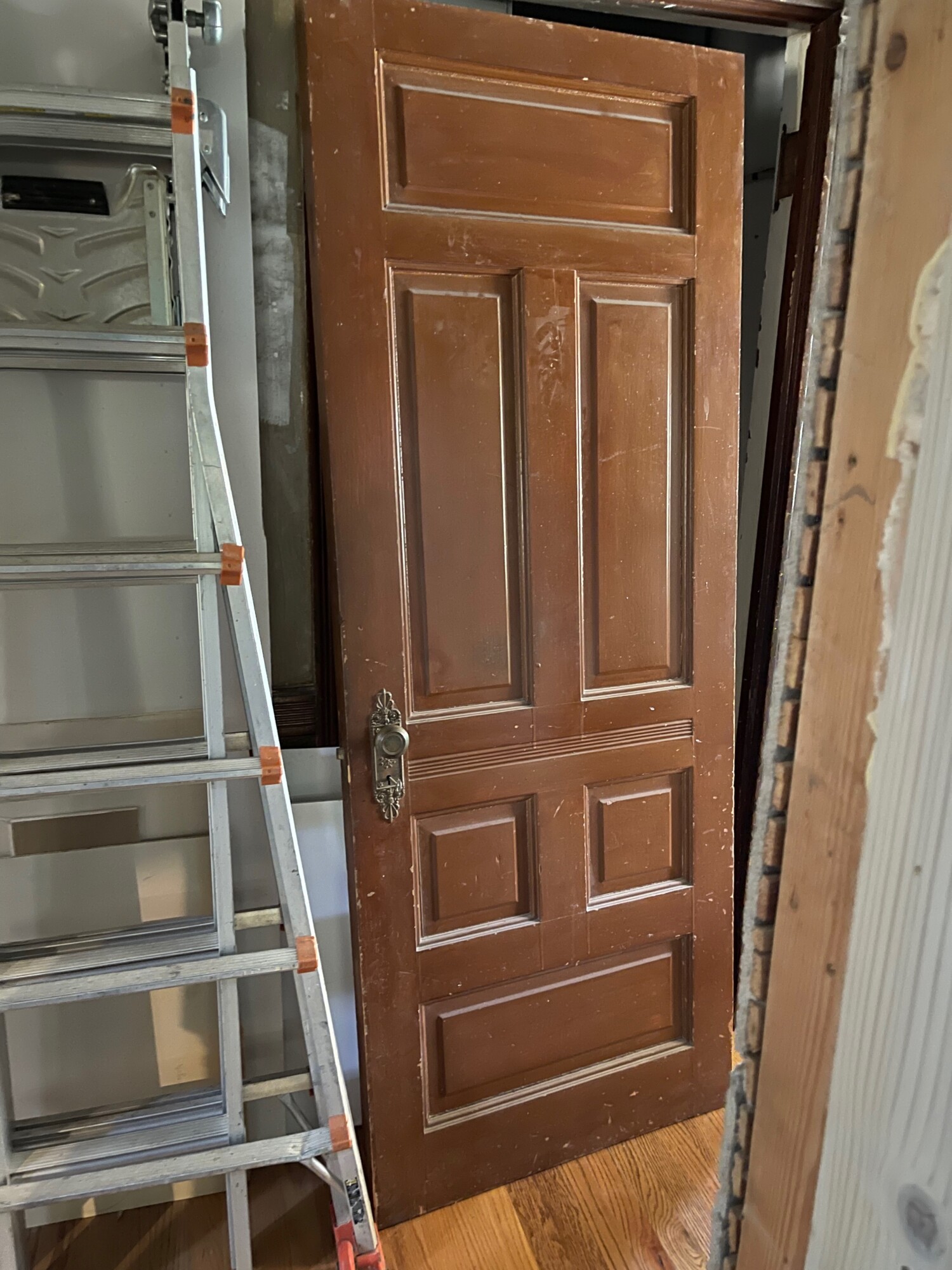 I wouldn’t be so sure that door might not turn up. Perhaps the previous owner has it. He’s turned up with other stuff from the house. Maybe give him a call? Or was it relocated to another part of the house or even to the Carriage House? Perhaps it was cut down and reused. Any other odd doors somewhere? Maybe you’ll get lucky and find an 8 foot door matching these doors in local salvage or not too far away. The hunt is on!