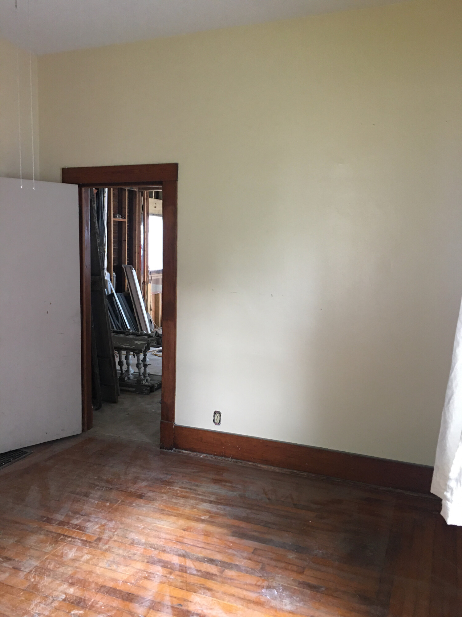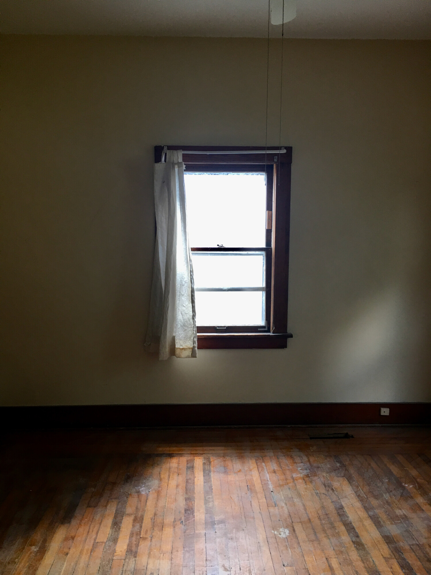 In the SW corner of the carriage house, first floor, is what I call the secret room. I call it this because it is kinda hidden, and one has to walk under the staircase to access it. This is very cool, spatially, in person. This is the west wall. The window overlooks the front yard. I have not seen the room empty in seven years.