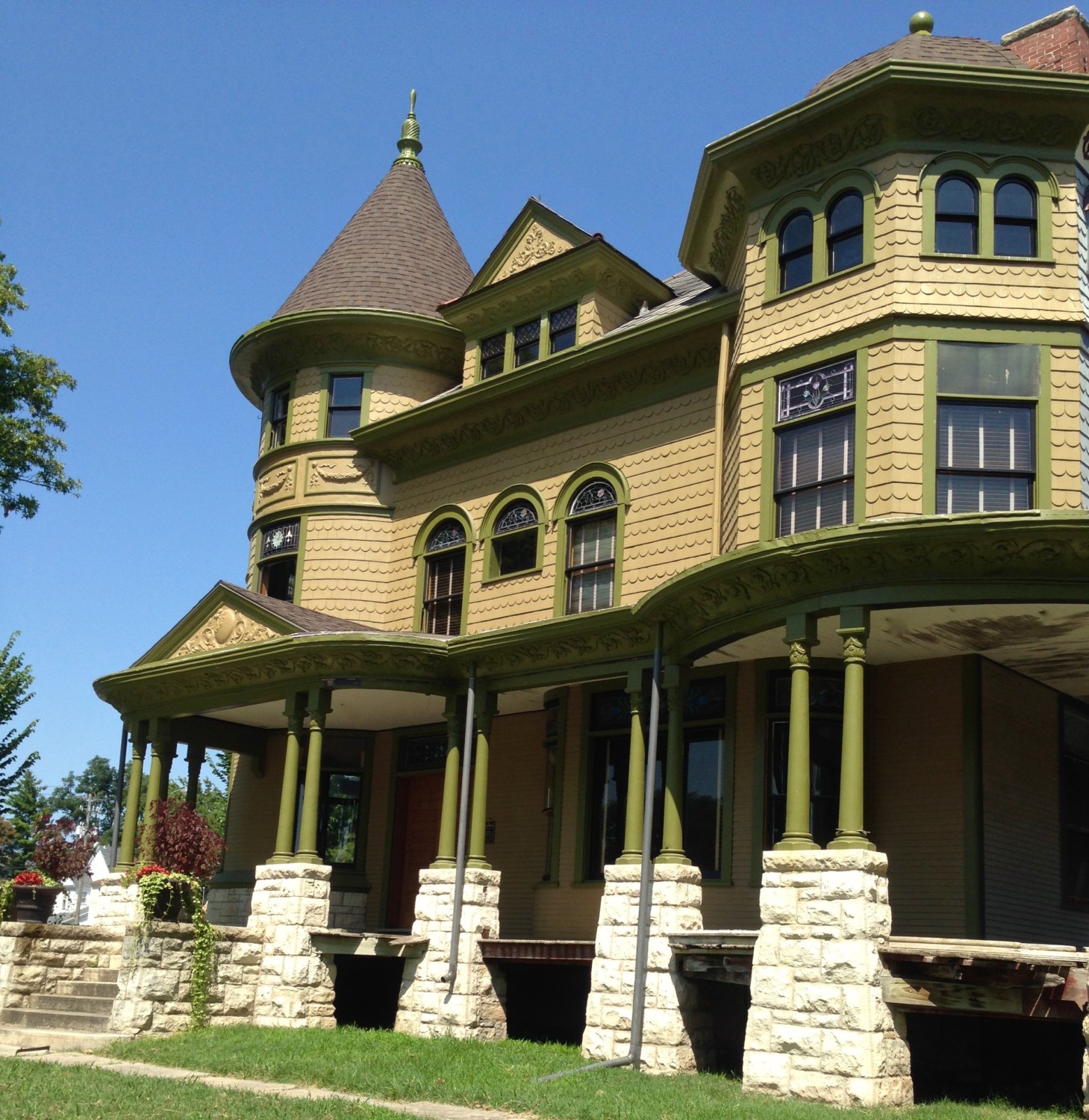 This June, the house had NO finials! I had the round tower finial removed so it could be restored by WF Norman, and I commissioned them to recreate the lost octagon finial. Now, are you sitting down? If so, please scroll way down…
